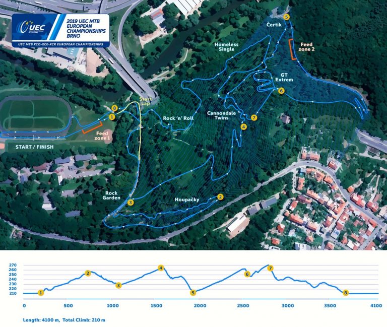 The Mountain Bike European Championships will compete over a complex, up-and-down course today and tomorrow in Pisárky. Admission is free. Photo credit: www.mtbbrno.eu.