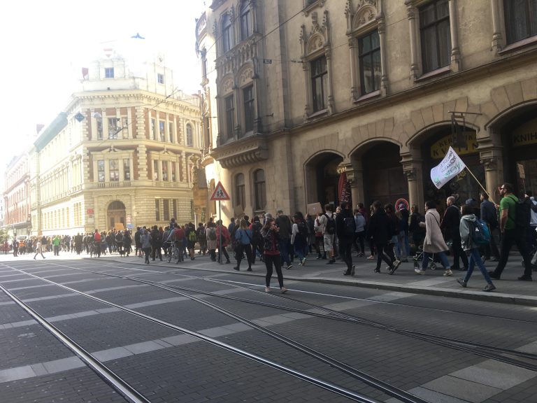With over 1,000 people showing interest in the event on social media, hundreds attended to protest climate change in Brno this morning – in solidarity with other protests happening in other countries across all continents today. Though the protest was initiated at grass-roots level by high school students to voice their dissatisfaction, the protesters in Brno were not only high schoolers – interest in the future of the climate of our planet has brought together all the people who support the cause.