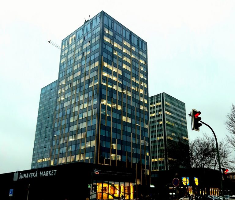 The renovation of the second of the “three Brno skyscrapers” – officially called “Tower B” – has been completed. By the end of the year, the tower on Šumavská will offer over 10,000 m2 of offices, most of which has already been rented. Photo: TP / Brno Daily.