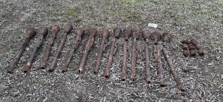 Police technicians identified 13 armored fists (“panzerfaust”) and 9 hand grenades.