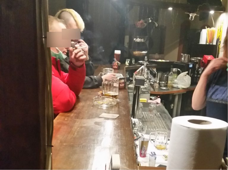 Cigarette smoke and plenty of alcohol; Brno police discovered one pub open during a routine check in the Veveří district on Wednesday night. Photo: Policie ČR.