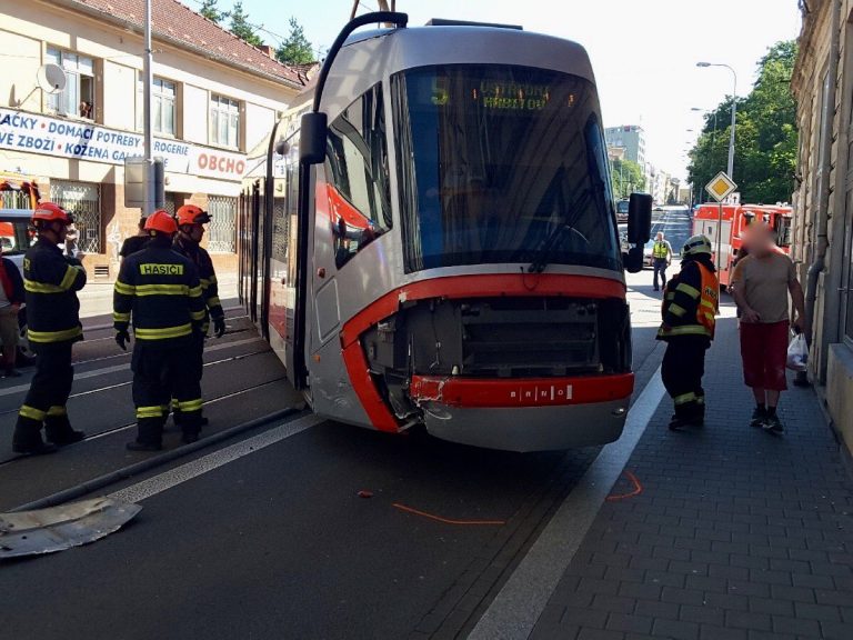 Milady Horákové in Brno is closed after a collision between a tram and a delivery van. Photo: South Moravian Fire Department (HSZ JMK).
