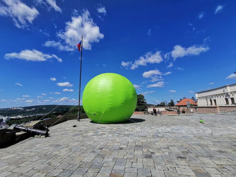 The seven-meter bright green pea, currently located at Spilberk Castle, is the latest (temporary) addition to Brno’s collection of peculiar public art, and can be seen in numerous locations in Brno city centre in the next two weeks. Photos: TMA.