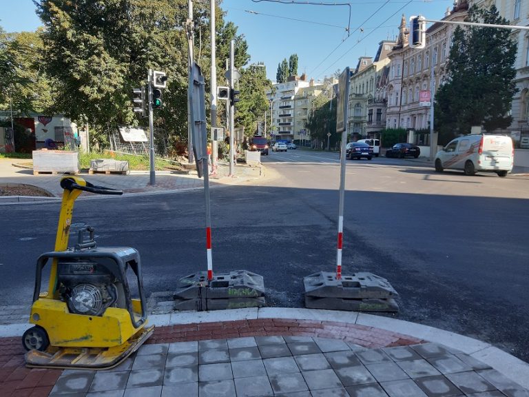 Repair and reconstruction work on Lužánecká, which runs the length of Brno’s Lužánky Park on the city side, has been ongoing since June 2019. On Monday, September 7th, the contractor will hand over the construction to the city. Only minor landscaping work remains to be completed. Photo: Lužánecká and Drobného intersection on Friday, September 4. Credit: KK / BD.