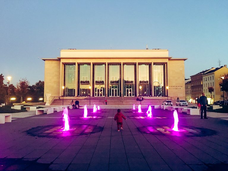 The fountain in front of Janáček Theatre will be symbolically lit up in pink to commemorate “Pink October”. An exhibition will also travel to various locations around Brno from mid-October to help raise awareness about breast cancer. Photo credit: Tien Dong.