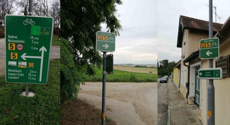 The voluntary cooperation of municipalities on the Brno–Vienna Cycling Trail, which brings together 24 towns and villages on the cycle route between Brno and Hevlín, replaced the missing signposts on the Austrian section of the Brno–Vienna international cycle path, from Laa an der Thaya to Mistelbach. Photos via MMB.