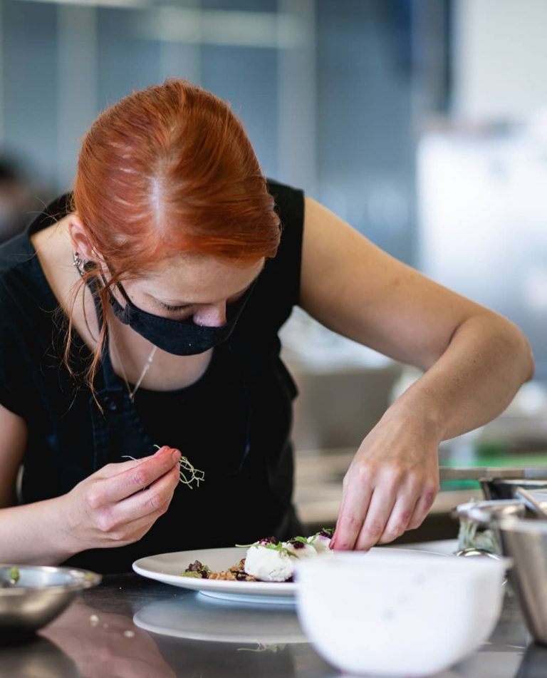 The winning dish was Carpaccio of baked beetroot, almond ‘cheese’ gnocchi, caviar of blackberries, crumble of walnuts and oatmeal with rocket pesto. The winner Pavla explained “the dish we presented was supposed to be seasonal, easily digestible and nutritionally balanced. I do not take food as a “filler”, but at the same time I am interested in the fact that there is enough protein, quality fats and carbohydrates in the dish… So that the taste of the individual components fits together beautifully and the person does not feel tired after eating. ”
