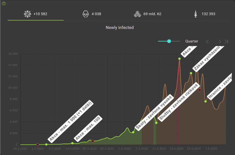 The game was intended to have educational value. “Our intention was to combine fun with learning. It is a game, but in its ‘heart’ there is a real epidemiological model, which is very carefully calibrated for the current situation of the pandemic,” said Michal Beneš, one of the creators of the project, quoted by Seznam Zpravy. The epidemiological, social, and economical models used to create the game are explained in detail on the game’s website, where players can also find a well-designed presentation of the Czech Republic’s coronavirus history up to now. This data, and the effectiveness of restrictive measures in the game, are described in-depth to allow players to make more successful decisions.