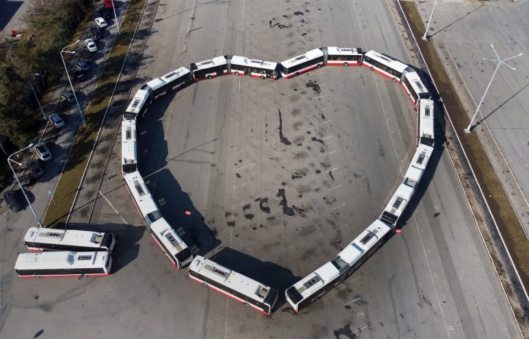 The Brno Transport Company (DPMB) created a heart with ten buses at the Slatina bus depot measuring 60m square. The company’s aim in creating the heart out of buses is to foster positivity during the ongoing difficult circumstances.