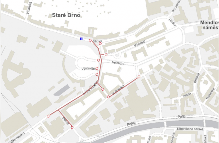 Brno, Jul 12 (BD) – Starting this week, closures will apply on Křížkovského in a 500-metre section between Poříčí and Hlinky. Traffic will also be restricted on parts of Výstavní, Veletržní, Zedníkova, and Poříčí, and the pedestrian crossing between Veletržní and Výstaviště streets and at the intersection of Hlinky – Výstavní streets will be impassable while the construction work is in active progress.