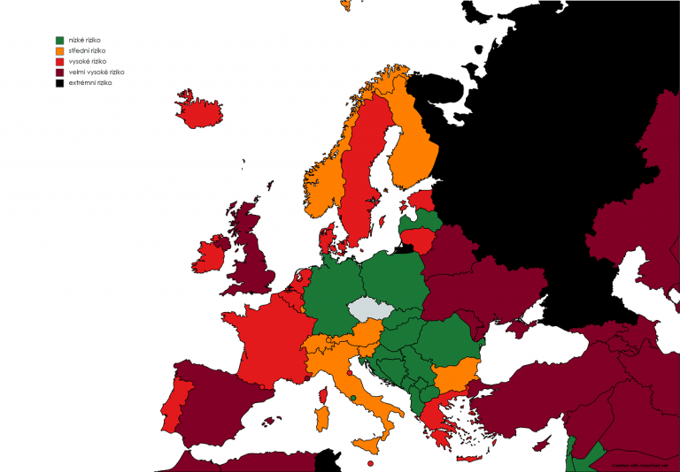 Czech Rep., Aug 16 (BD) – Based on data from the European Center for Disease Prevention and Control (ECDC), the Czech Ministry of Health has updated its list of countries according to the degree of coronavirus risk, effective from today, August 16th. The entry regulations are unified for green and orange groups of countries, and for red and dark red groups.