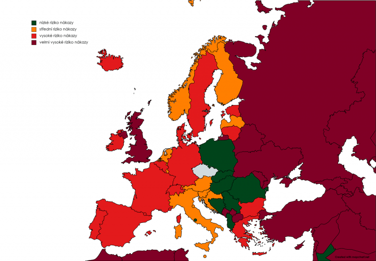 Czech Rep., Aug 30 (BD) – Based on data from the European Center for Disease Prevention and Control (ECDC), the Czech Ministry of Health has updated its list of countries according to the degree of coronavirus risk, effective from today, August 30th. The entry regulations are unified for green and orange groups of countries, and for red and dark red groups.