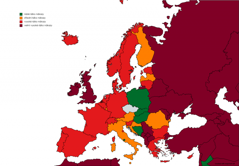 Czech Rep., Sep 6 (BD) – Based on data from the European Center for Disease Prevention and Control (ECDC), the Czech Ministry of Health has updated its list of countries according to the degree of coronavirus risk, effective from today, September 6th. The entry regulations are unified for green and orange groups of countries, and for red and dark red groups.