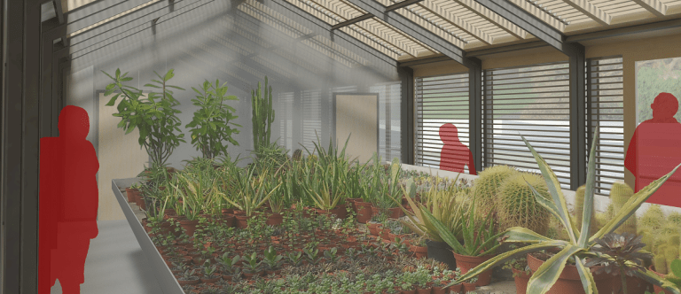 According to Kateřina Děkaníková, the leader of the project, “the two separate greenhouses are now combined into one space, albeit separated internally. Technologies that support sustainability and ecology are also new, such as a partially green roof, solar water heating or harvesting, and the use of rainwater for irrigation and flushing”.