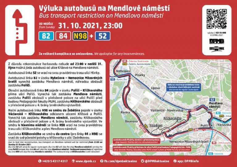 Brno, Nov 1 (BD) – Mendlovo Náměstí is now closed due to essential works on the water supply and sewage systems.