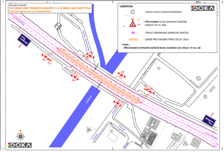In the area of ​​the Svitava bridge, Provazníkova will only have one lane in each direction from Tomkovo náměstí to Stará osada.