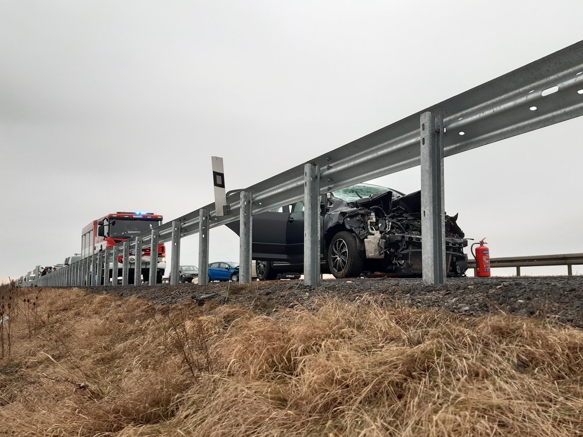 An accident involving several vehicles (5 cars, a van, and a truck) was reported at 18.5. km on the D52...