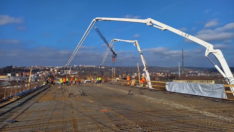 Take a look at these photos from the concreting of the overpass bridge deck, where 700 m2 of concrete was used. Photo credit: ŘSD Jihomoravský kraj.