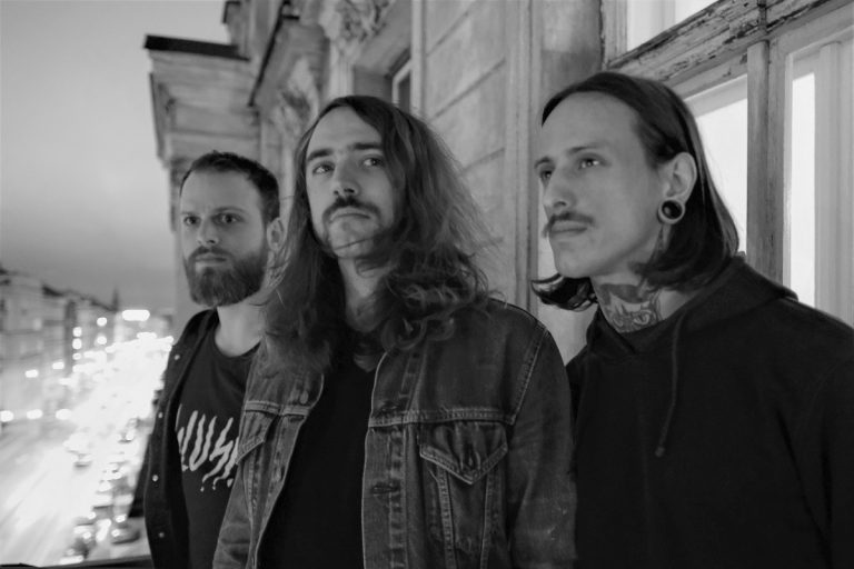 When I saw Acid Row in concert for the first time, I was absorbed by an explosive energy, a great instrumental execution and a special kind of communication with the audience. As the audience responded, I realised that this band has gained a reputation for live shows and I wanted to know more about their path, their way of creation, and the work in preparation, so I spoke to the members of the band to find out more: guitarist Dominik, drummer Radek, and Alex, the bassist/baritone player, singer and manager of the band.