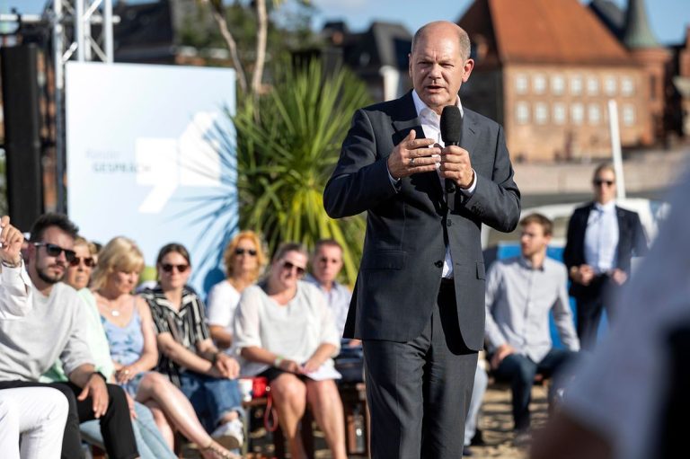 Chancellor Olaf Scholz gives a speech in Schleswig-Holstein. Credit: German Federal Government / Bergmann.