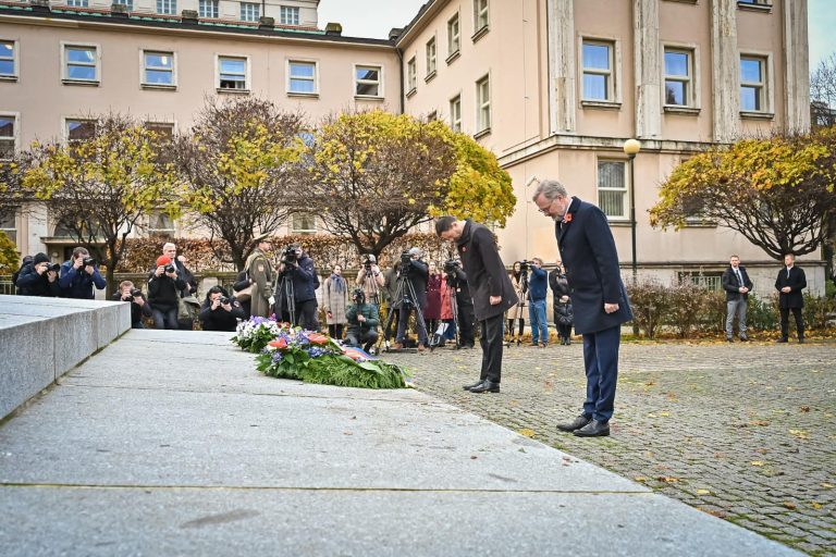 Heger and Fiala laid wreaths in Prague this morning to honour the country’s veterans and casualties of war. Photo credit: Petr Fiala, via Facebook.
