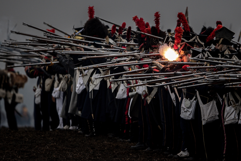 More than 1,000 history enthusiasts in period uniforms from 14 countries, along with 50 horses and 12 cannons, staged the reconstruction of Napoleon’s famous manoeuvre called the Lion’s jump.