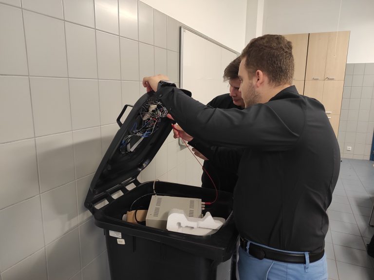 “It works on the principle of scanning the interior of the dustbin with the help of an ultrasonic sensor,” explained Jan Janča, a member of the research team and a student at the MENDELU Faculty of Business Economics. “It sends ultrasonic waves into the dustbin, which are reflected, and the sensor calculates the distance from the bottom of the dustbin to its lid based on the time of flight.”