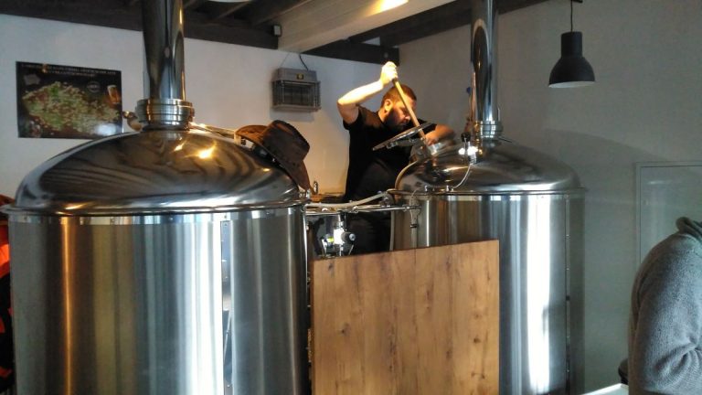 Another beer the brewers are proud of is their Keller beer. This beer comes from the Franconia region of Germany and is conditioned in an oak cask, which gives the beer a particular woody flavour. But one of the brewers’ own favourite styles is smoked beer, in which smoked malt is used. Honza and Tomas created their own Rauchmärzen, which is sold during the winter months.