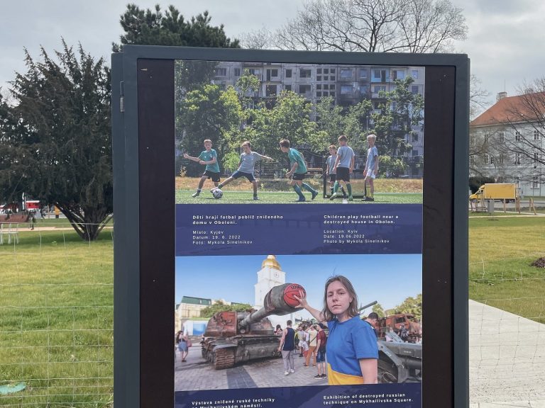 In the current survey, 11% of people agreed with the possibility of Ukrainian refugees’ permanent settlement in the Czech Republic, and 71% preferred their temporary admission followed by return to their country of origin. Photo: An outdoor photographic exhibition entitled “Kyiv Is an Unbroken Heart of Europe” on Moravske namesti in Brno this Spring. Credit: Vorlak Treng.