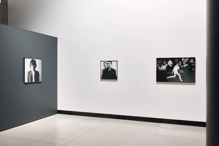 Icons of the Bohemian scene in Paris, London and New York in the mid-20th century open the exhibition. Spider leg mascara and geometric fashion encapsulate the swinging 60s of London. Simultaneously, on the west coast of the USA, the countercultural movement is emblemized by one naked man wading through a sea of hippies who have flocked to watch the Rolling Stones in San Francisco.