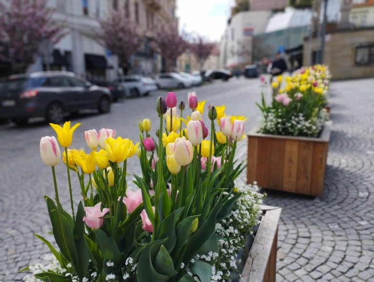 Flowers in Dominikánské náměstí, which are maintained thanks to the ReUse project. Photo: SAKO Brno.