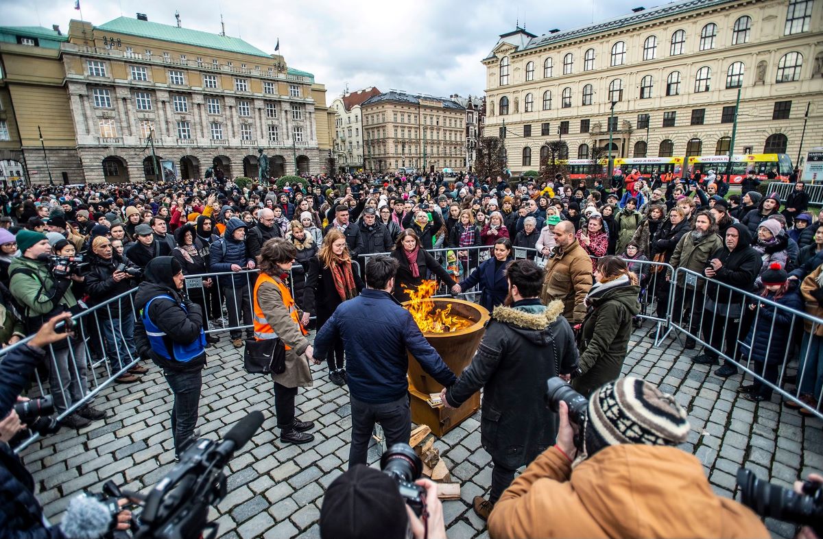 Kralickova and Leheckova then symbolically lit a fire in the square, using the light from the lantern, to commemorate the victims of the tragic shooting. The light should burn for the whole of January.