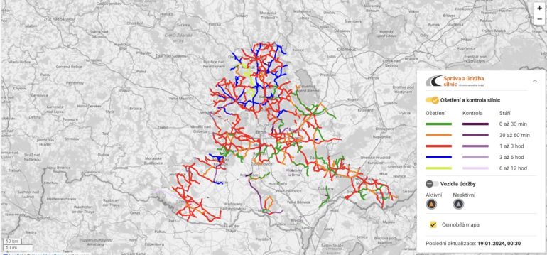 “It’s the first step for people to have an overview of the work of our road workers and to be able to see what is currently being done,” said regional governor Jan Grolich. “The shape is not yet final and it will keep moving. Work is being done to make the winter maintenance plan appear on the map, so that you can see the treated sections according to importance, and also which parts of the roads are not being maintained. In the summer, mowing along the roadside and the location of vehicles performing routine maintenance could also be reflected in the map.”