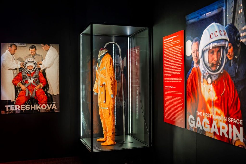 A large part of the exhibition is dominated by the Cold War Space Race, the Apollo missions, and the international cooperation that led to the launching of the International Space Station. The most remarkable exhibits presented are without a doubt some of the original objects that returned from space missions or were used during astronaut training, including personal equipment, a laptop, spacesuits, and even an F-1 rocket engine that was part of a Saturn V rocket and was found in 2013 at the bottom of the Atlantic Ocean, where it was lying since 1969.