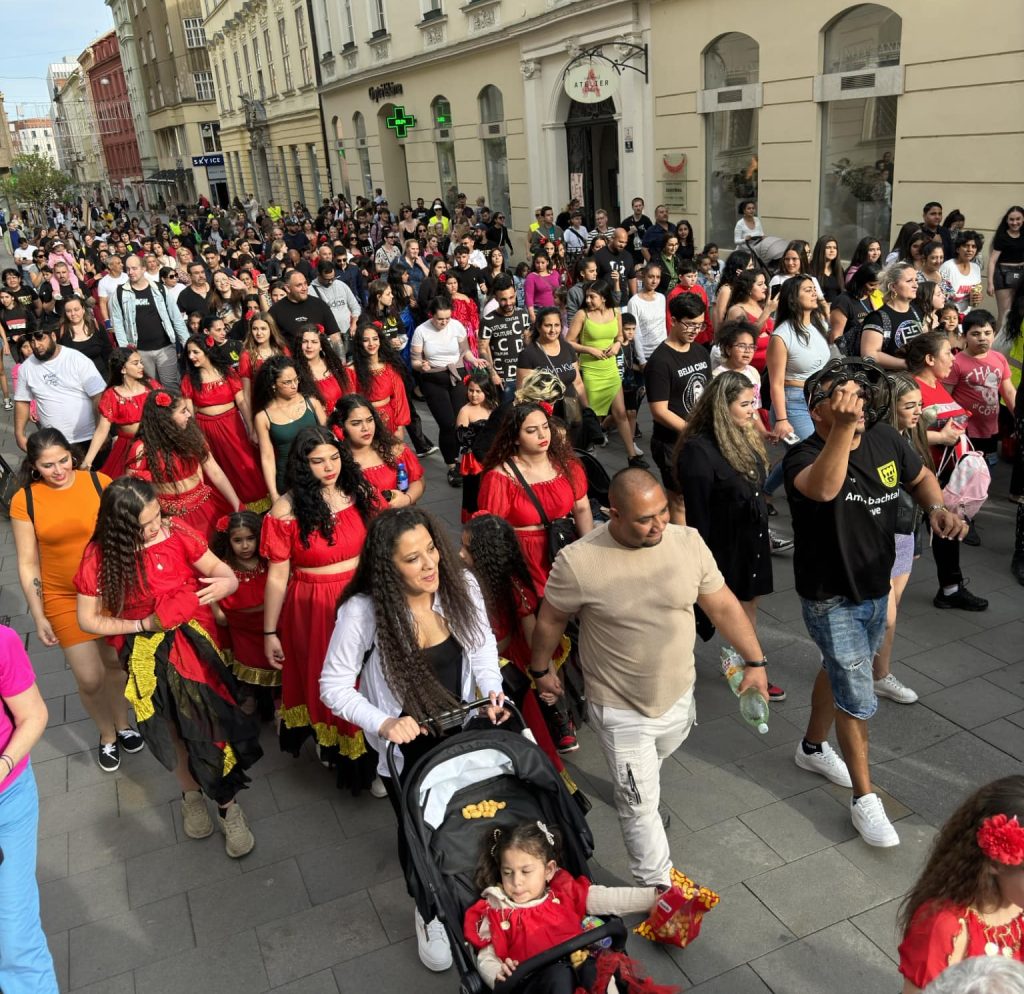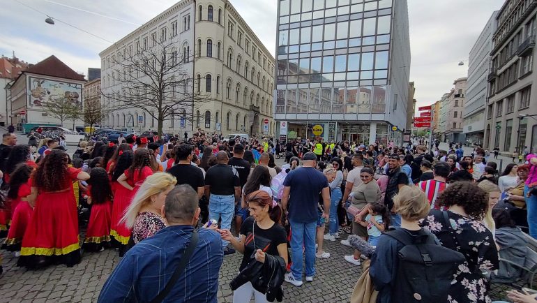 FB: More than 200 people walked from Brno’s Museum of Roma Culture into the town centre yesterday afternoon, accompanied by the sounds of Roma music, for a Pride parade to mark International Roma Day. The march was accompanied by four dance groups from around the country, dressed in traditional outfits, who demonstrated their skills at several stops along the parade.