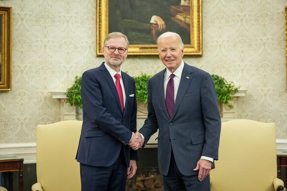 It is crucial that the Czech Republic and the US share the same values, such as human rights, freedom and democracy, Czech Prime Minister Petr Fiala said at the beginning of a meeting with US President Joe Biden in the Oval Office at the White House yesterday.