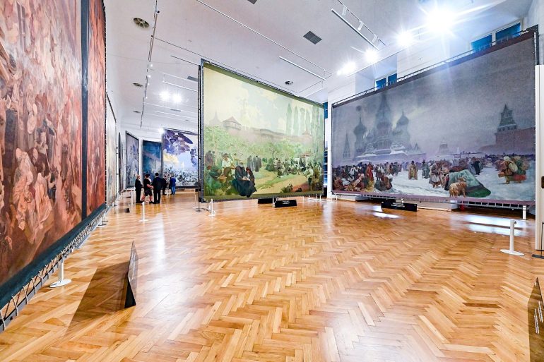 Brno had an experience with Mucha’s works as recently as 2018, when the Brno Exhibition Center hosted nine screens of the Slav Epic for seven months as part of the RE:publika festival. The screens were viewed by 75,000 visitors. The Moravian Gallery collection in Brno also owns Mucha’s series of six Beatitudes, though they are now temporarily inaccessible to the public due to the restoration work at the Governor’s Palace.