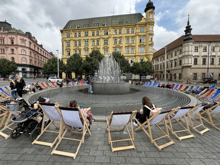 “Relaxation zones are very popular among visitors, which is why we installed them in frequented places in the centre of Brno again this year,” said Ludmila Oulehlová, Deputy Mayor of Brno-střed. They are located in three locations: Náměstí Svobody, Dominikánské náměstí, and 140 deckchairs on Zelný trh.