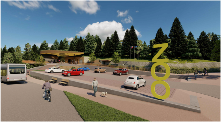 According to Deputy Mayor Filip Chvátal, the new entrance building will consist of two separate buildings, one housing the cash desk and souvenir shop, the other a restaurant. Both properties will have green roofs. The plans also include a 290-space car park in the southern part of the plot, furthest from the building. As much greenery will be planted in the area as possible. Part of the plans include a footbridge over Ondrova, ending under the path leading to the polar bear exhibit. There should also be an elevator. The construction of the footbridge will cost CZK 27 million, and of the whole new entrance CZK 241 million.