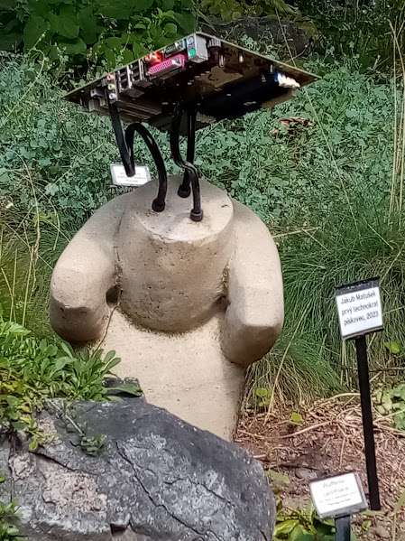 A neighbouring piece is Prvý Technokrat (First Technocrat) by Jakub Matušek. Here there is some poignant humour in the part humanoid, part computer AI creature. He may have status as the First Technocrat, but it is clearly not a comfortable existence. He evokes curiosity and also some sympathy.