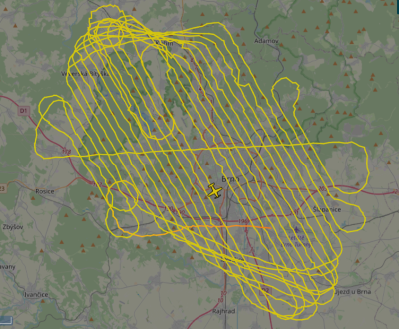 The scan took four hours, during which the plane was flying in a spiral above Brno, proceeding from the edges of the city towards the center, thus creating the flight lines. This technique minimizes temperature differences between adjacent flight lines, and creates an almost seamless mosaic of the city. Atmospheric conditions at the time of scanning were very favourable, with visibility over 40 km and almost no cloud cover, ensuring clear and consistent images.