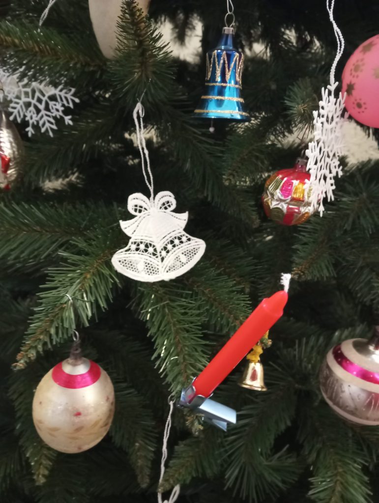 In the 1980s, the Christmas tree decorations matched the fashion of the decade, characterised by vibrant, multicolored decorations such as durable plastic ornaments with glittery tinsel, garlands, beaded chains, and electric lights, creating a sense of luxury. The iconic tree topper and edible chocolate decorations completed the impression of escapism and extravagance during the times of the declining socialist economy.