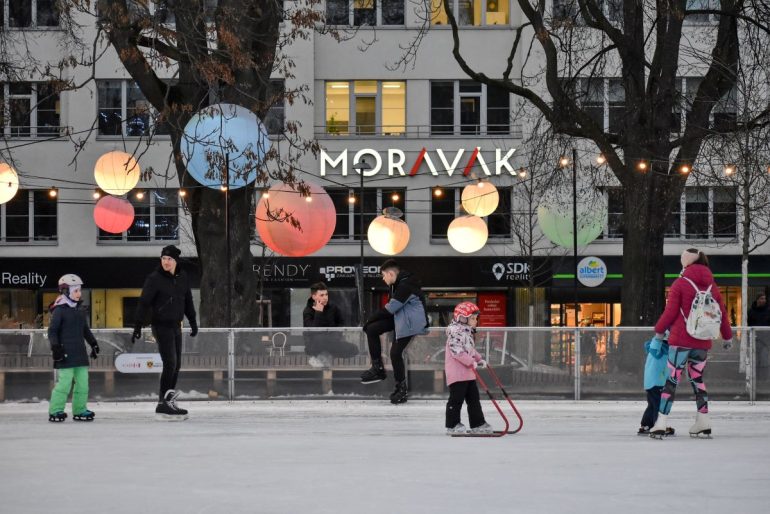 The 800-square-metre outdoor rink welcomed the first skaters in the last week of November. In addition to regular visitors, the rink is used every year by elementary and kindergarten students from the district, who skate for free as part of their lessons. The city hall is now extending free entry to children from Brno children’s homes.