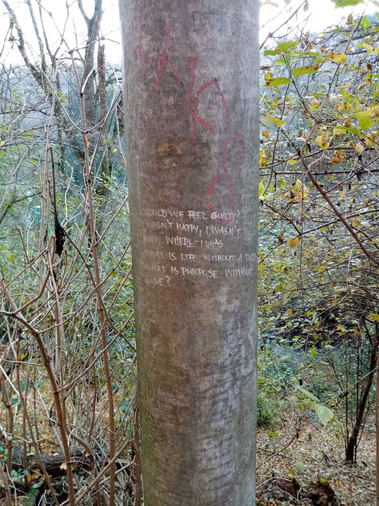 How long ago was it written? Who were the couple? Why do the messages climb the hill? Why did the writer embed their words in the other widely ranging signage community?