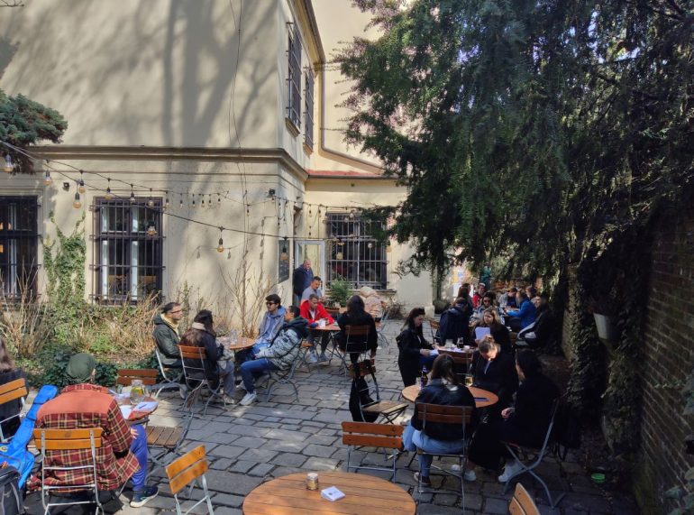 Falk offers a nice and quiet working space, easily accessible from the city center and the Faculty of Arts, which is why you will find many students in this café. With its vintage-style interior, it is an inspiring place for reading or writing. The café has several rooms with different table sizes, making it ideal for both group meetings and solo work. The menu includes a great selection of coffee, tea, and hot or cold drinks at very reasonable prices. The outdoor seating area faces a quiet street, offering a lovely view of Brno’s beautiful architecture. The Falk team is very friendly and always ready to offer recommendations. One thing to note: the Wi-Fi in this café does not work well, so be prepared to go back to traditional paper-based work if you plan to study.