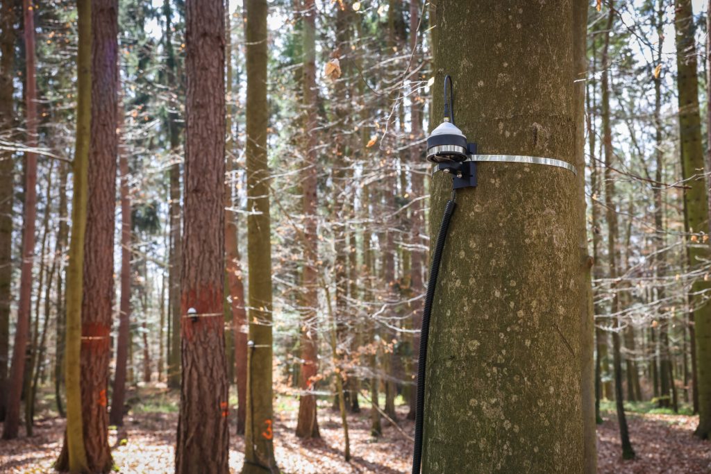 LDF experts installed stations equipped with modems in the study areas to send data. Every 30 minutes, the stations monitor soil moisture, soil water potential, soil temperature, light conditions under the stands and air temperature and humidity. Very sensitive tape dendrometers are attached to the trees to study circumferential trunk changes and measure trunk growth dynamics. They can also determine if specific trees in the stand are suffering from drought.