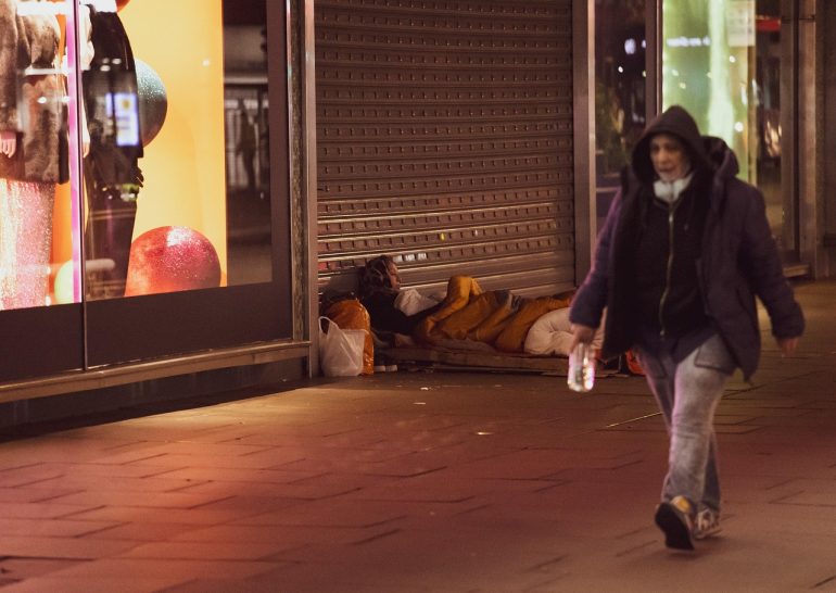 Her laughter is bitter, but it’s real. Just like the fear that follows her every night when she hears the voices of drunks, addicts, or someone who could throw a burning bottle at their tent at any moment. The fear lingers during the day too. Not long ago, a shopkeeper near their spot threatened their friend by saying he’d burn all the homeless people.