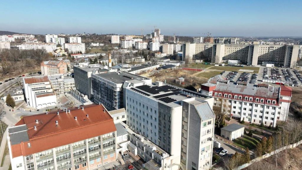 Since the beginning of the Russian invasion, 350 children injured by mines, firearms, and shrapnel have been treated at St. Nicholas Hospital. Each year, the hospital admits 28,000 children and conducts approximately 90,000 consultations. The solar power plant was installed above the first block of the surgical department and supplies the operating rooms of neurosurgery, two general surgeries, and otorhinolaryngology.