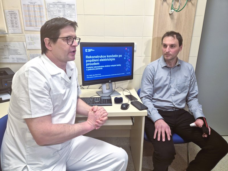 Doctors from the Department of Burns and Plastic Surgery, led by department head Dr. Libor Streit, then began a series of operations. The man underwent several procedures, including two complex microsurgical reconstructions – one in the hand area, where the damage was caused by the input of electric current, and the other in the left leg area, which was burned by its output.