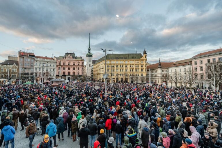 Thousands of people gathered in Brno’s náměstí Svobody yesterday to show their support for President Petr Pavel, organised by the Million Moments activist group. Similar gatherings were held in hundreds of other cities, towns and villages across the Czech Republic.